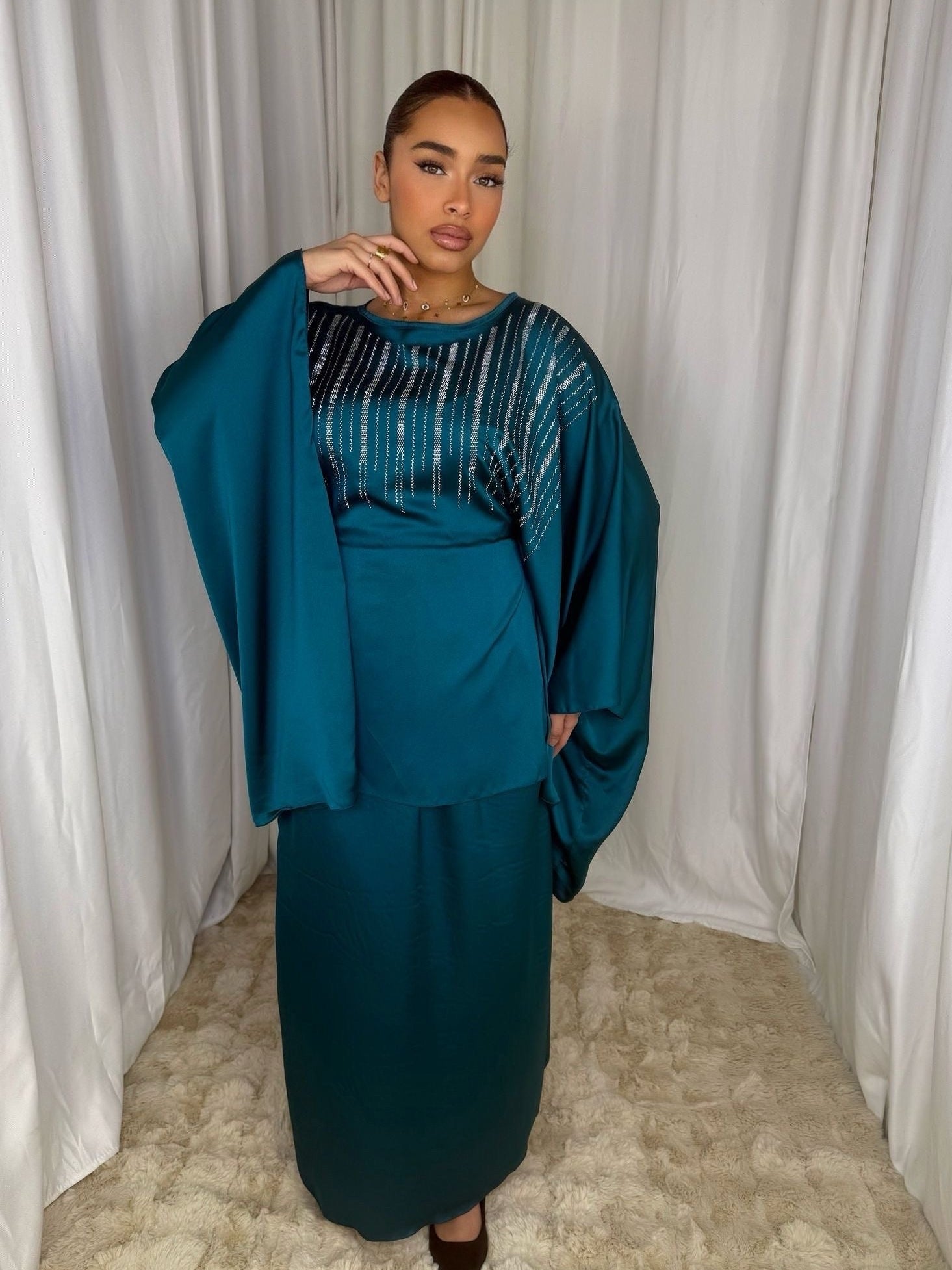 Ensemble Farasha - Ensemble à Strass Jupe et Haut avec Manches Papillon