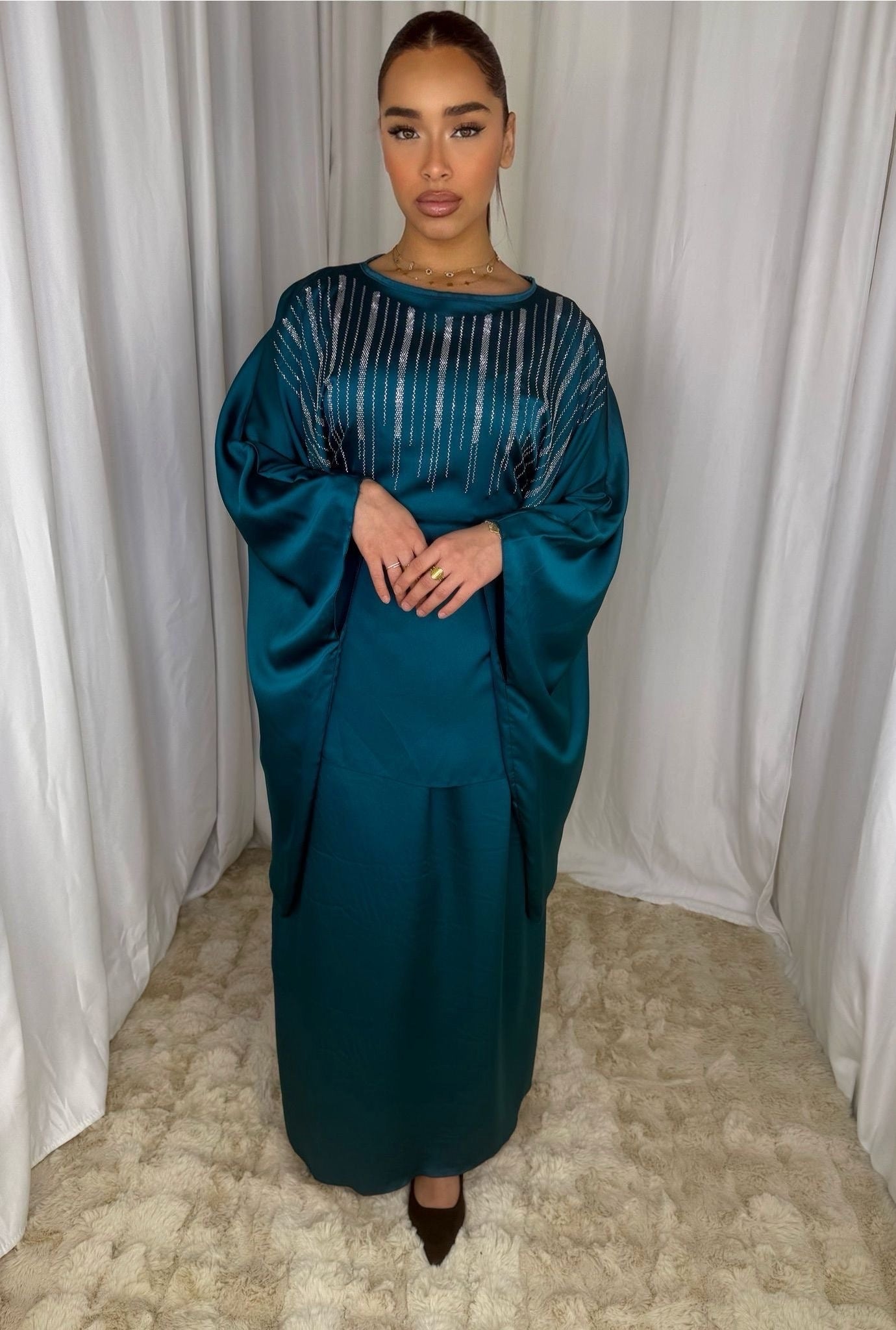 Laissez-vous séduire par notre ensemble jupe et haut à manches papillon, rehaussé de strass scintillants sur le buste. Sa coupe fluide et aérienne assure un tombé gracieux, parfait pour allier confort et raffinement. Idéal pour toutes les occasions, cet ensemble s’adapte à toutes les morphologies et sublime votre silhouette avec une touche lumineuse.